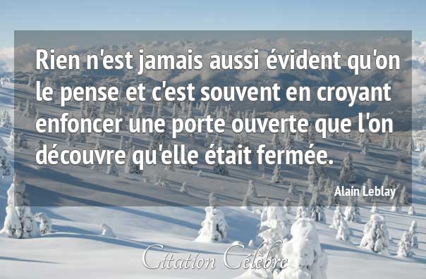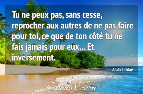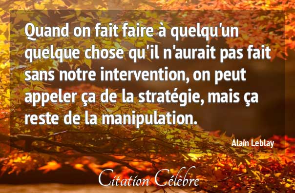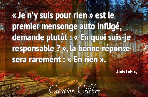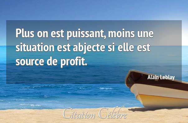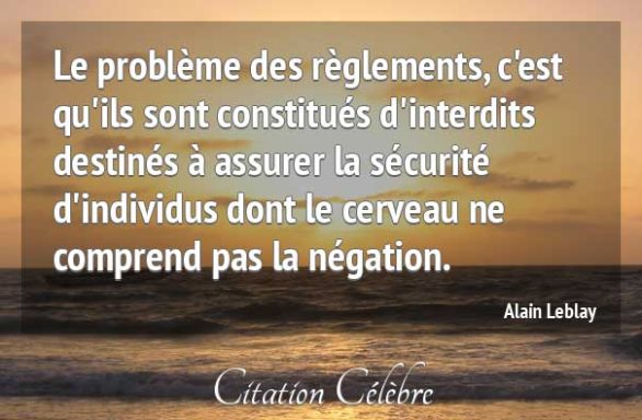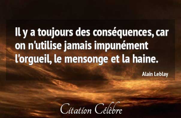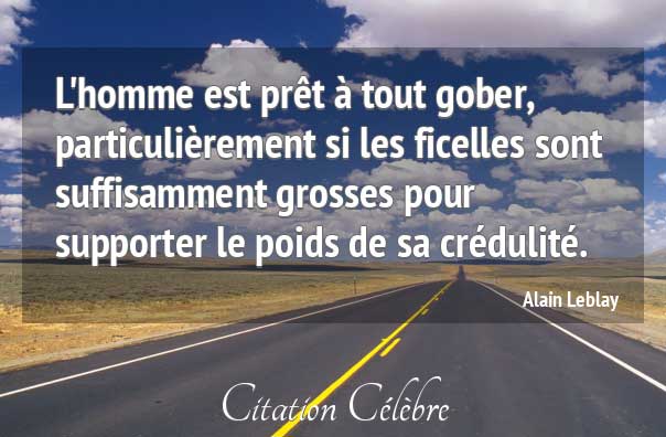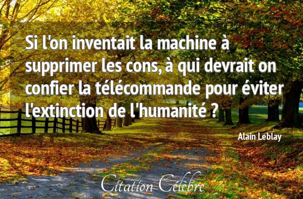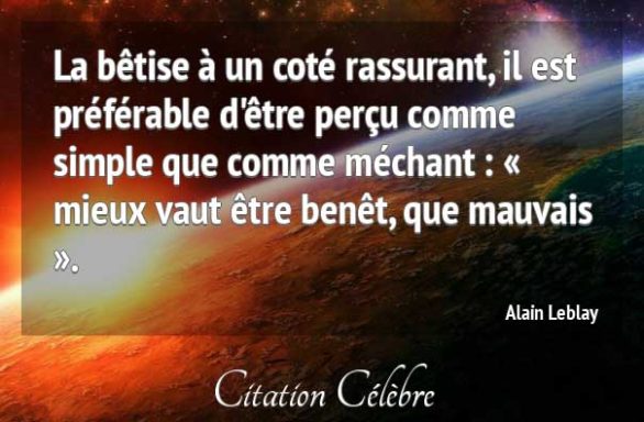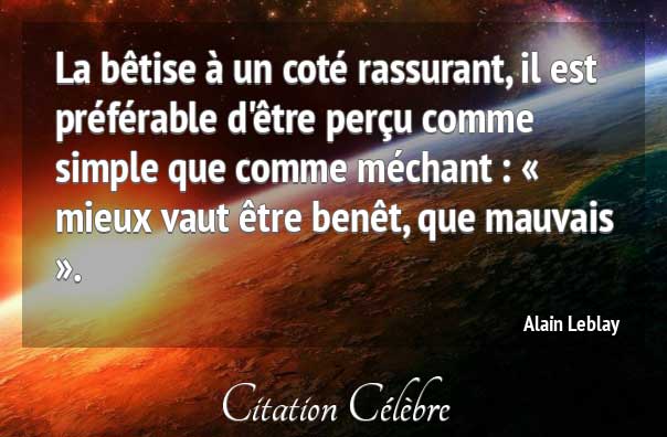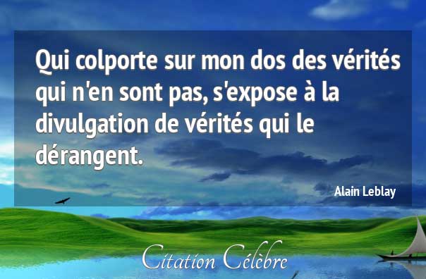 Les citations d'Alain Leblay sont percutantes, souvent cyniques ou ironiques, avec un mélange de sagesse sociale, de réalisme brut et parfois d'humour noir — surtout sur les relations humaines, la bêtise, la confiance, le mensonge ou la négociation.