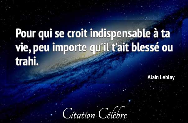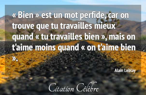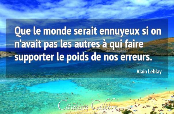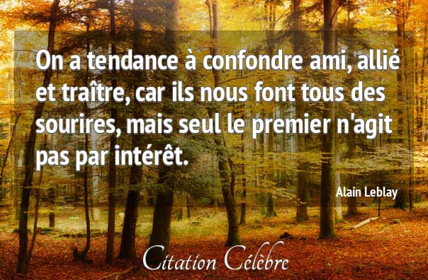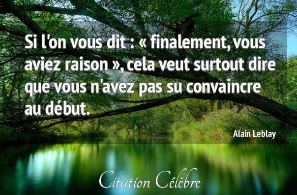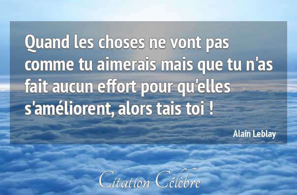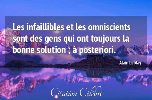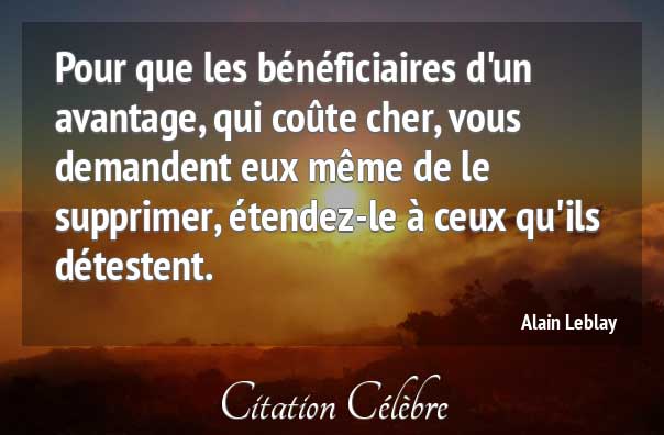 Ces citations d'Alain Leblay sont des formules mnémotechniques percutantes, courtes, tranchantes et souvent paradoxales, conçues pour frapper l'esprit en séance de formation, comme des maximes de formateur qui claquent pour illustrer la psychologie humaine, la motivation, la confiance ou les biais cognitifs. Elles ont ensuite essaimé sur les réseaux, devenant virales et décontextualisées, mais leur ADN reste pédagogique : des outils d'apprentissage déguisés en punchlines cyniques ou réalistes. (GROK)